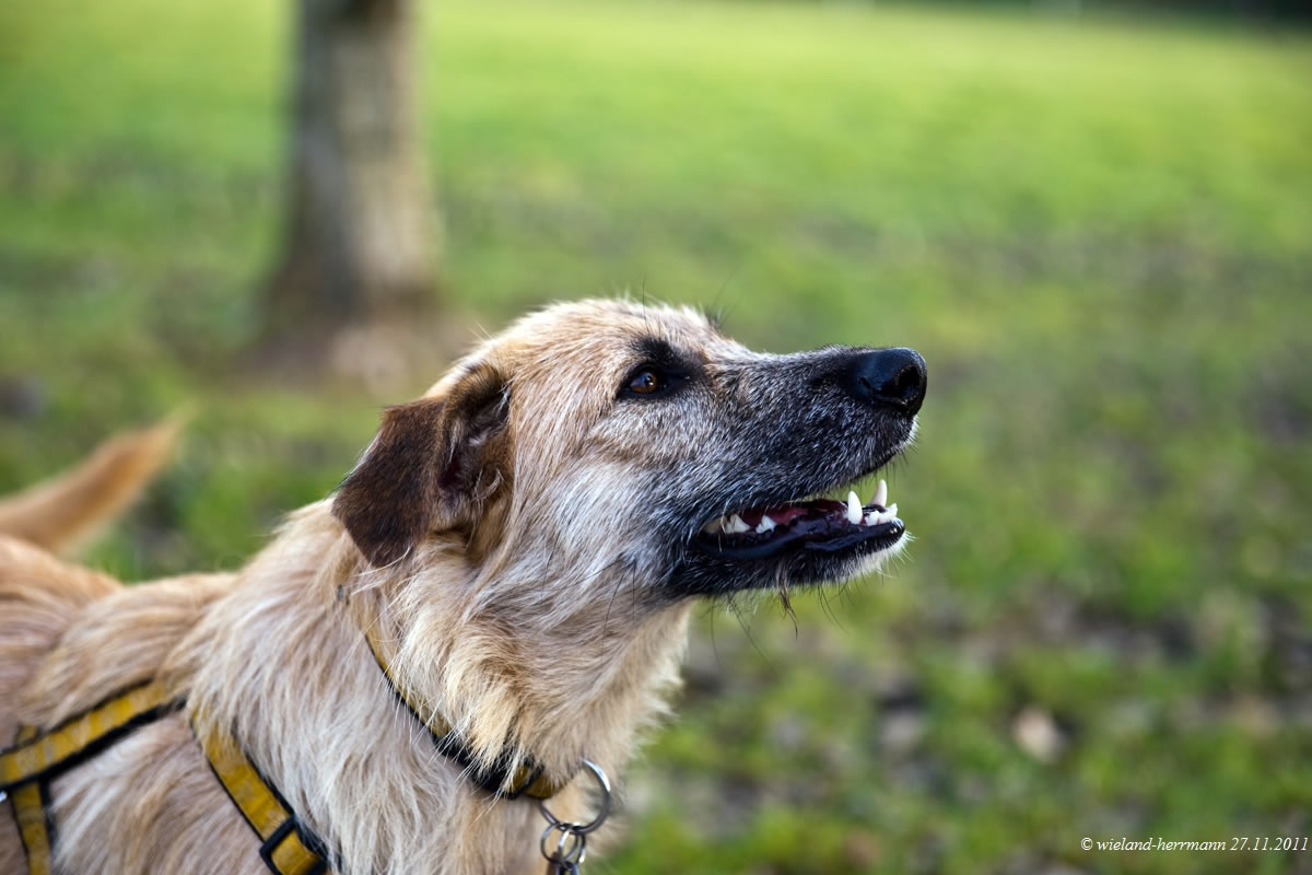 Aha, die Mitleidsmasche zieht doch immer wieder, Frauchen greift in die Tasche